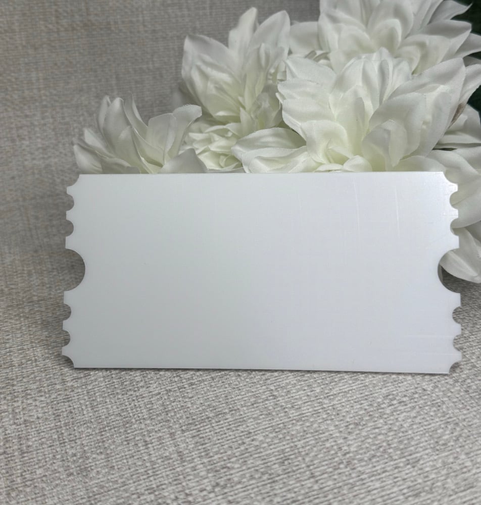 Create your own unique designs with our high-quality acrylic ticket blanks, perfect for crafting personalised gifts, keepsakes, and business products. Made from durable 2mm acrylic, these blanks provide a smooth surface ideal for vinyl, UV printing, sublimation, or hand-painted designs.