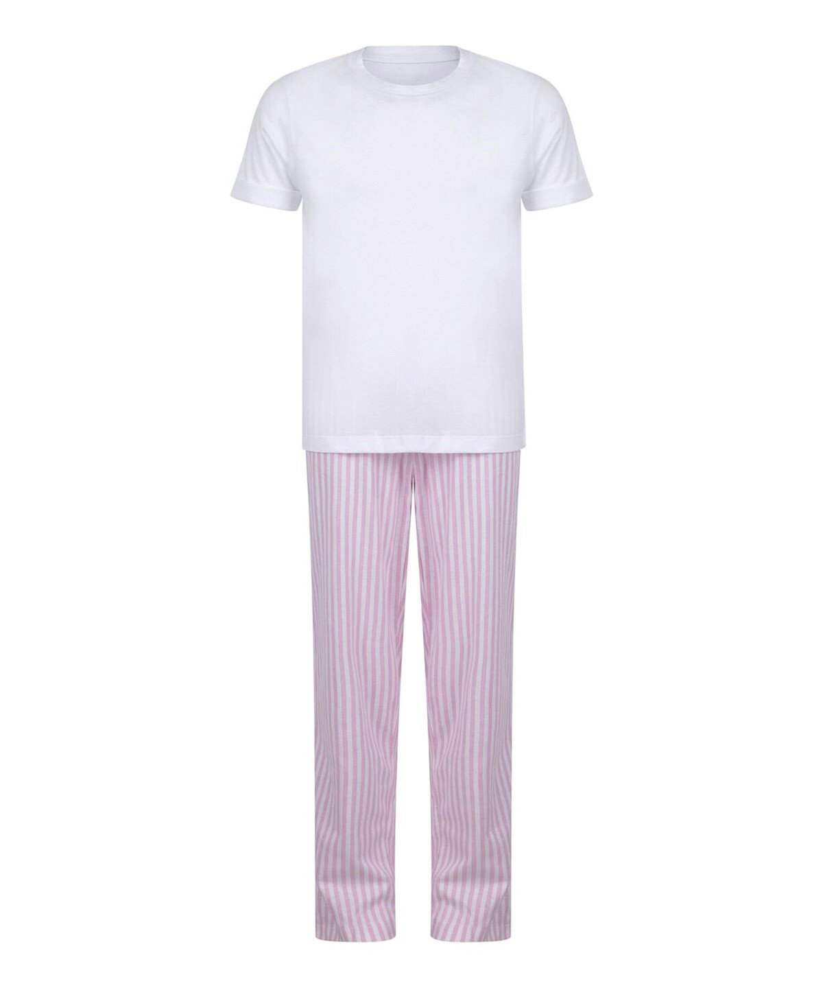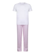Soft and lightweight pyjama set featuring a white, comfortable loose fit t-shirt and contrast pants. Perfect to personalise